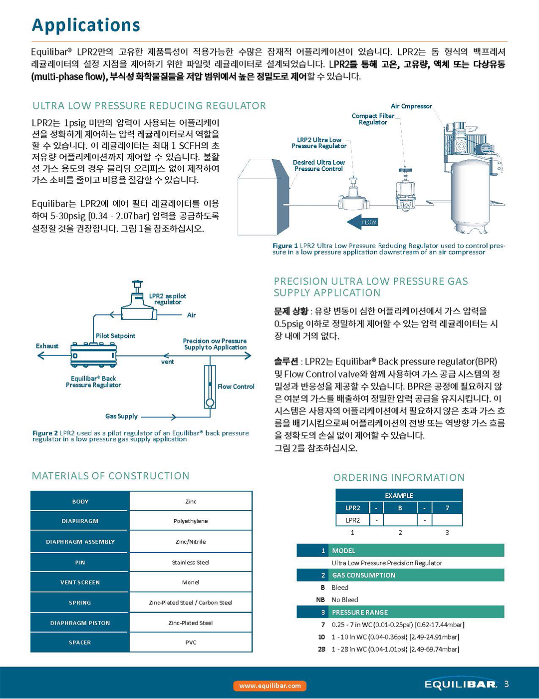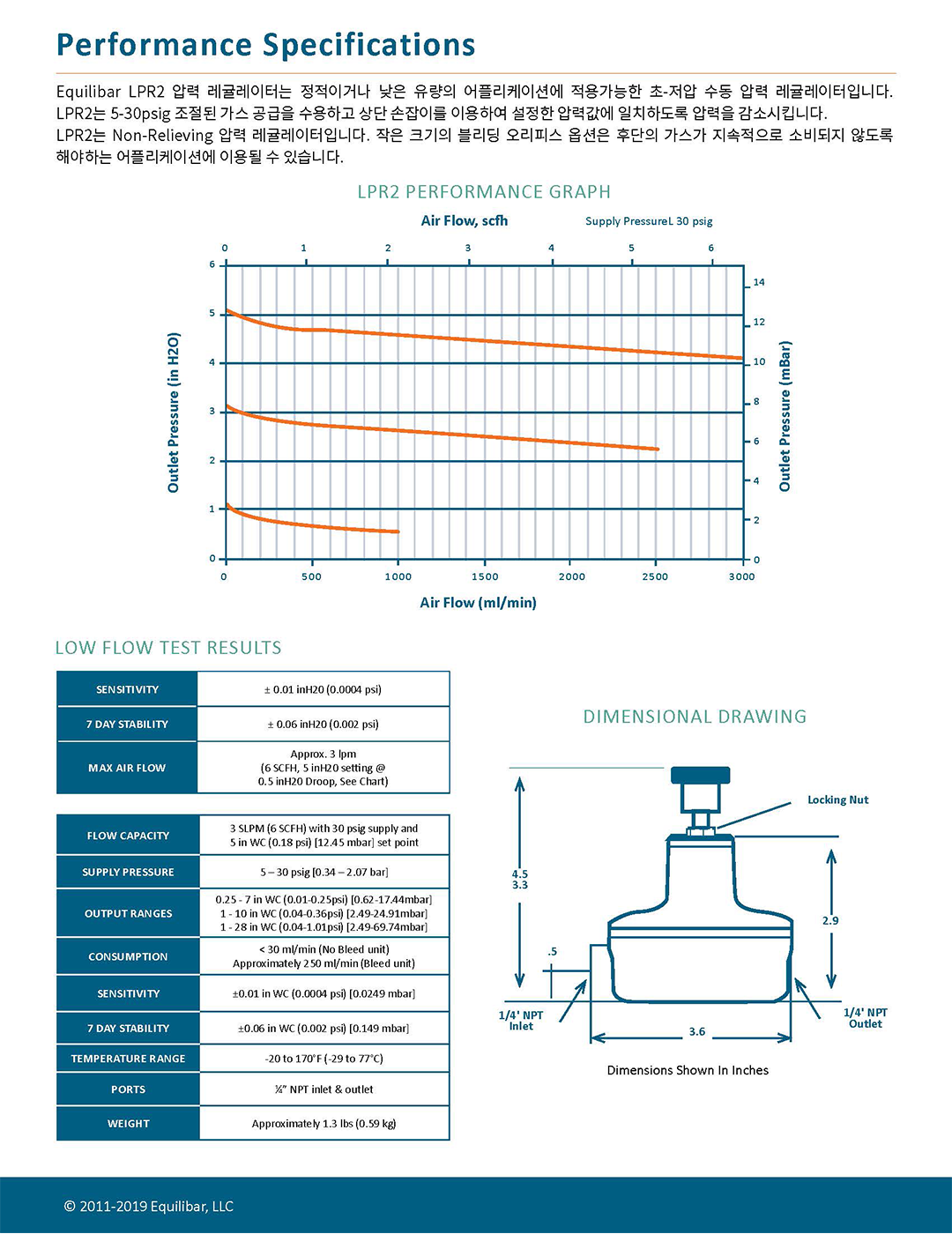 Equilibar LPR2 압력 레귤레이터는 정적이거나 낮은 유량의 어플리케이션에 적용가능한 초-저압 수동 압력 레귤레이터입니다.