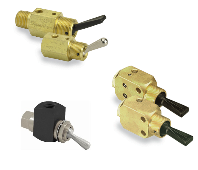 <토글(손잡이)를 움직여 방향을 제어하는 수동 방향제어 밸브>